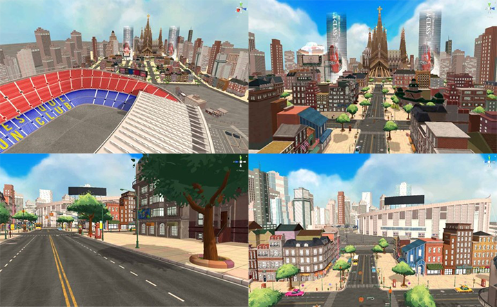 바르셀로나 캄프누 Stadium과 주변 타운을 중심으로 실제 구조를 살리되, 가상의 메타버스 환경에 맞게끔 설계